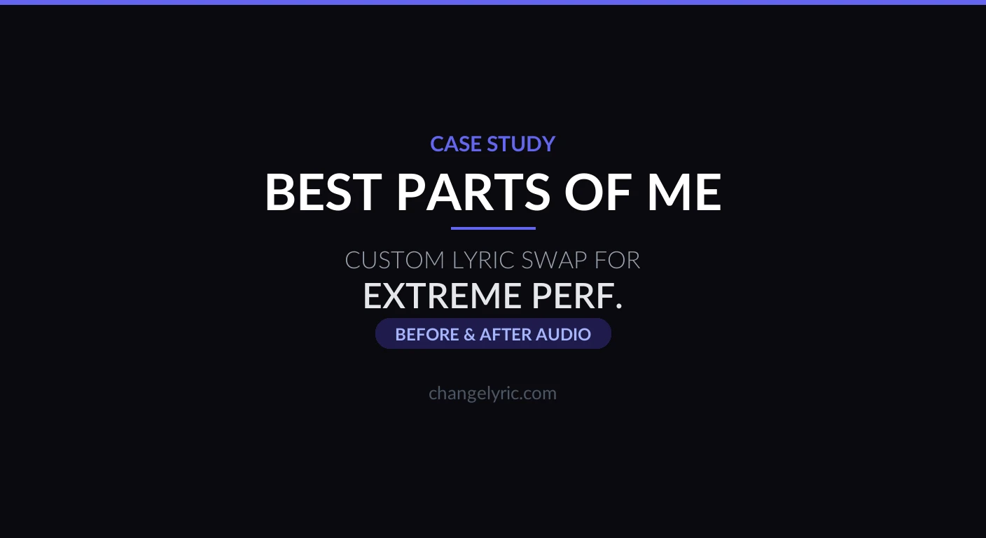 Sometimes the most meaningful changes are the smallest ones. EXTREME PERFORMANCE came to ChangeLyric with Will Dempsey's touching father-daughter ballad "Best Parts of Me" and a request to make it match their specific reality. The song's emotional core would stay the same — only the details would change.