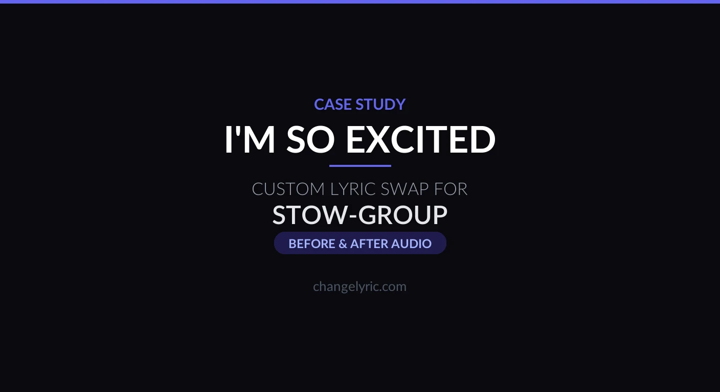 The Pointer Sisters' "I'm So Excited" is one of the most infectious pop anthems ever made. Stow-Group, a global warehousing and logistics company with 2,000 employees, came to ChangeLyric to turn it into "Stow Excited" — a tribute to their CEO's 35 years of leadership. The song was played at a company event with island games, family day, and plenty of celebration.