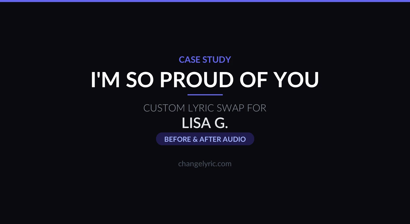 Some songs carry exactly the right message but aim it at the wrong person. Lisa came to ChangeLyric with a faith-based ballad called "I'm So Proud of You" that she wanted to sing over her daughter Tatiana at their wedding dance. The problem: the original was written for a man, with "bravest man I know" repeated throughout.