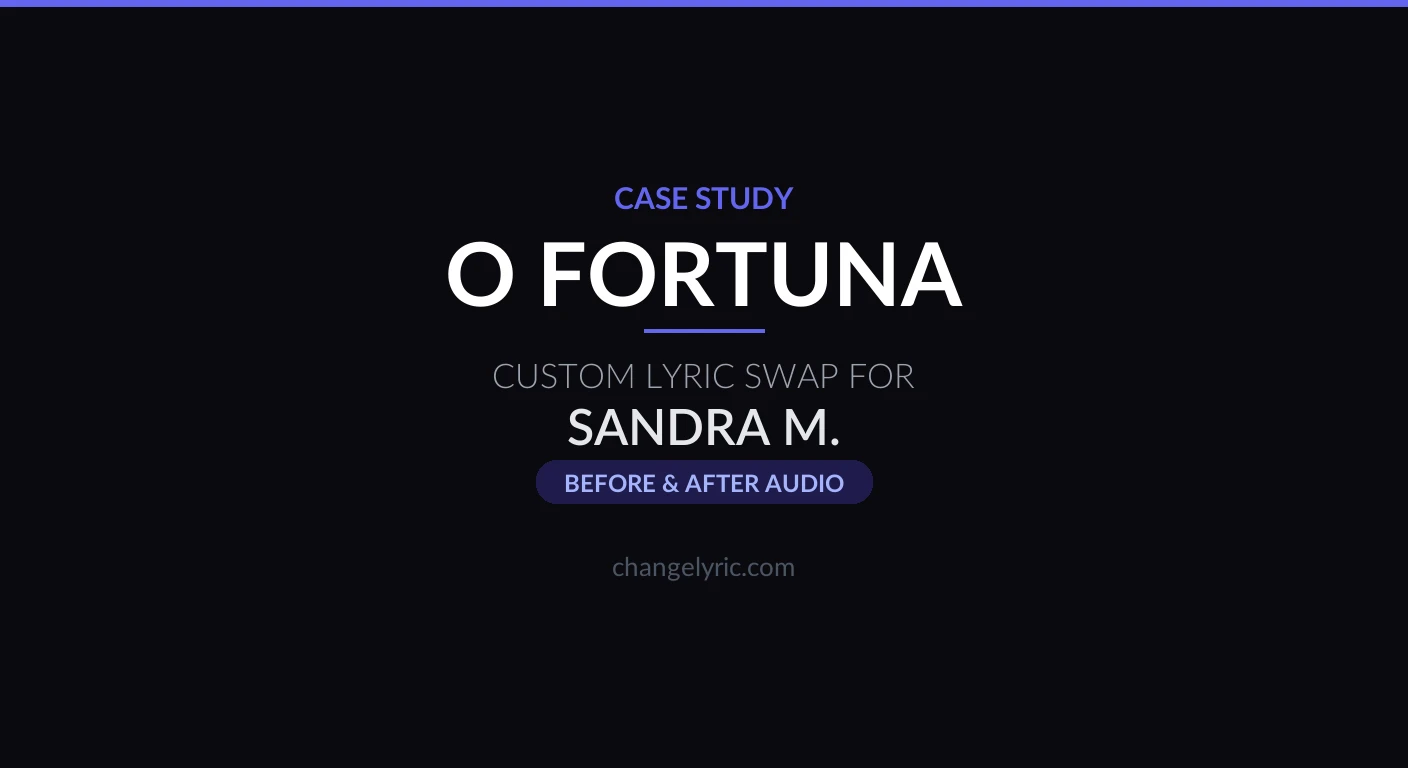 When Sandra came to the ChangeLyric done-for-you service and asked me to rewrite Carl Orff's "O Fortuna" into a silly packing song for her grandchild's trip to visit Grandma, I laughed. Then I looked at the original and stopped laughing. O Fortuna is the ominous Latin choral piece from Carmina Burana that every movie trailer since 1982 has ripped off.