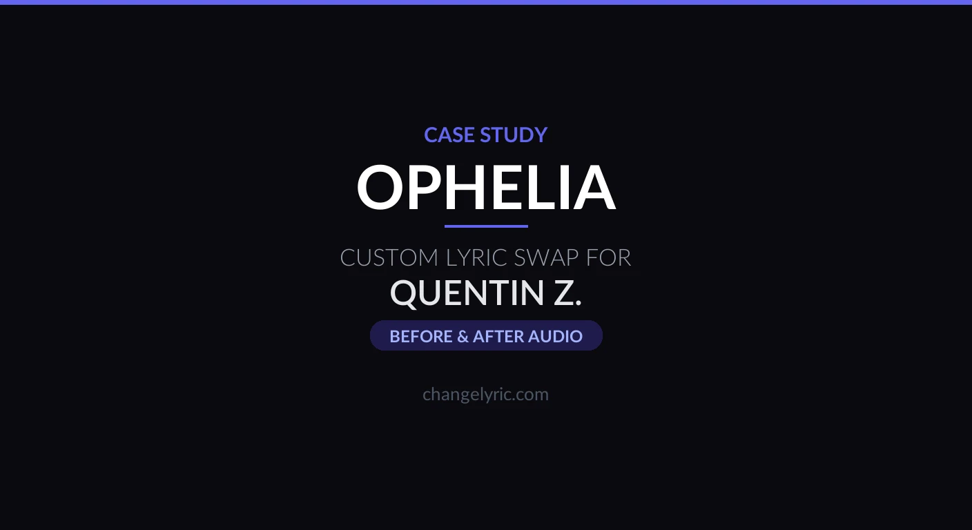 The Lumineers' "Ophelia" is one of those songs that sounds like it was written for someone specific — even though the name comes from Shakespeare. Quentin came to ChangeLyric wanting to make it actually specific. Every "Ophelia" in the song became "Aryana," and a few pronoun tweaks made the love interest unmistakably feminine.