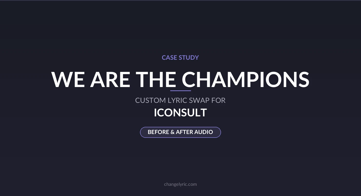 There are few songs that hit harder at a celebration than Queen's "We Are The Champions." Iconsult needed a version that would single out one person for a corporate event, turning the anthem from a collective victory lap into a personal tribute. They brought it to ChangeLyric and we made Josh the champion.
